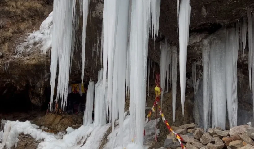 कड़ाके की ठंड में उच्च हिमालयी क्षेत्रों में जम गए झरने, टिम्मरसैंण में बर्फ का शिवलिंग लेने लगा आकार